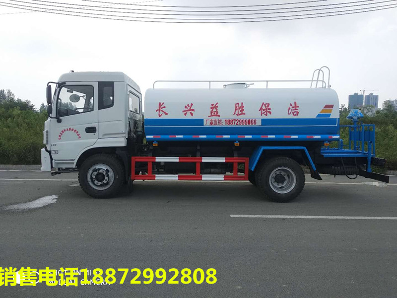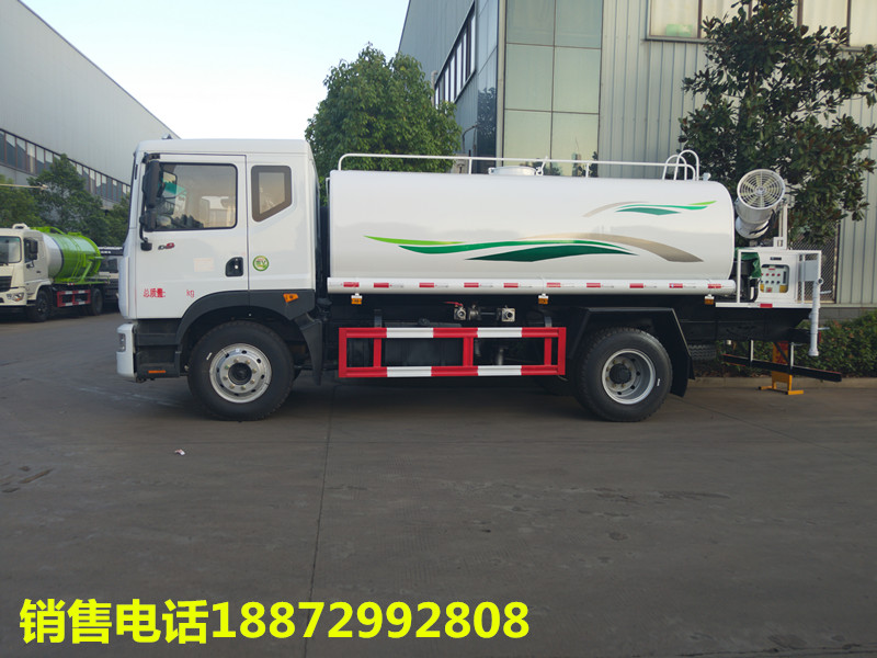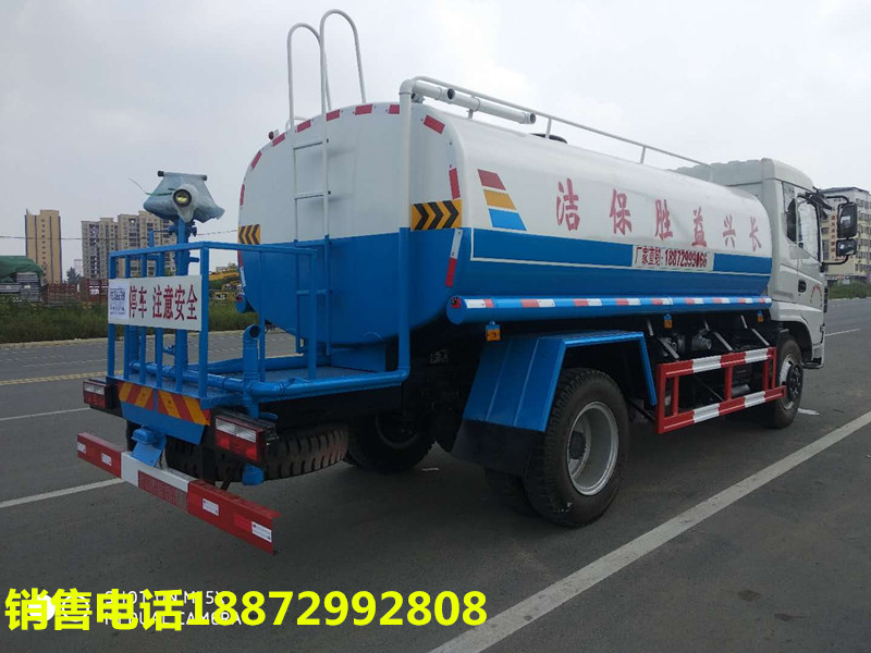 品名:水;密度:1000千克/立方米;有效容積:11.7立方米;罐體外形尺寸(長×長軸×短軸)(mm):4200×2300×1460;ABS配置前沖、后灑、左右側噴水、帶后工作平臺、平臺上安裝綠化灑水高炮(炮噴射形狀可調節:直沖、大雨、中雨毛毛雨、霧狀、可連續調節,360°旋轉),配消防接口,自流閥,濾網,帶專用灑水泵具有自吸自排功能灑水寬度≧14-16米,射程25-30米,帶增壓,方向助力。罐體采用優質碳鋼制作。帶兩根輸水軟管