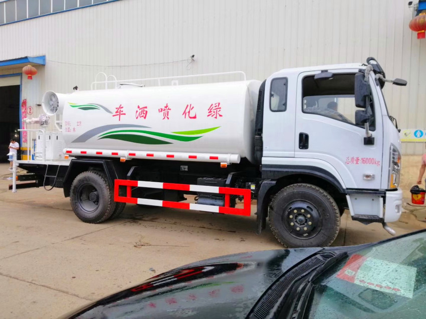吸程≧7米,灑水寬度≧14-16米,射程≧25-30米,引水時間<5min,流量60m3/h。前沖(噴)、后灑、帶側噴(花灑)、帶后工作平臺、平臺上安裝綠化灑水高炮(炮噴射形狀可調節(jié):直沖、大雨、中雨、毛毛雨、霧狀、可連續(xù)調節(jié),360°旋轉),配消防接口,自流閥,濾網(wǎng),帶自吸自排功能。配備大功率專用灑水泵,泵可自吸自排,安裝過濾網(wǎng),帶消防接口,可通過消防栓進水,帶自流閥,隨車選裝20米綠化卷盤,可噴灑農藥,罐體金屬漆。罐體有橢圓和方圓罐兩種,可根據(jù)用戶的要求定做,前橋5噸,后橋10噸,康明斯190匹馬力國五發(fā)動機,法士特8檔變速箱,ABS,空調