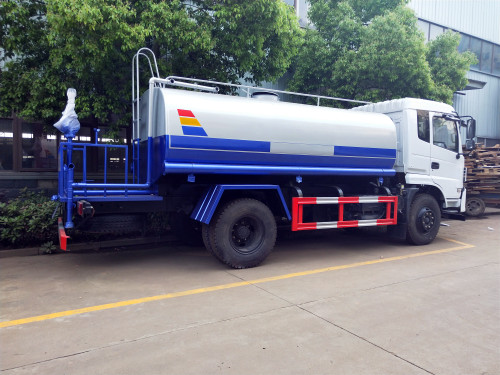 上裝配置:罐體容積為15立方灑水車,罐體鋼板為4mm碳鋼Q235材質,罐內隔板具有防波作用,以減輕汽車行駛時罐體液體沖擊,罐體及整車外形尺寸按照公告。帶大功率專用灑水泵,泵可自吸自排,整車前沖、后灑、側噴、帶65消防接口,后平臺帶綠化灑水車水炮,灑水炮可全方位旋轉,可連續調成直沖狀、大雨、小雨、毛毛雨;前封頭帶水位計,后平臺主管路帶1寸澆花接口,后爬梯。平臺后部帶小安全告知牌:“隨時停車,注意安全”,帶兩根水管及陰陽端。罐體顏色:上白/下藍,銀灰/銀藍,罐體兩側噴“灑水車、綠化噴灑車”字樣,貼反光標示。灑水車可加裝前沖后灑氣動閥駕駛室控制、可加裝霧炮機組發電機組噴霧降塵裝置、車頭可加裝推雪雪鏟、雪滾裝置街道、公路除雪等。