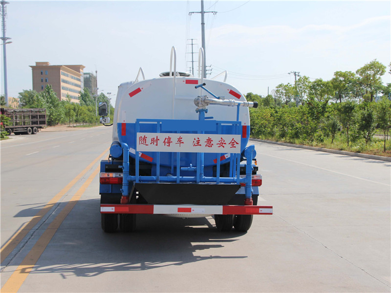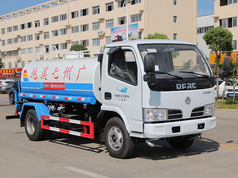市政環(huán)衛(wèi)5方灑水車價(jià)格參數(shù)配置圖片前裝有鴨嘴形噴嘴或圓頭沖嘴,后面裝有圓柱形灑水噴嘴或蓮蓬頭噴嘴,后部有一工作平臺(tái),裝配有水炮。后部還可裝8個(gè)噴嘴。