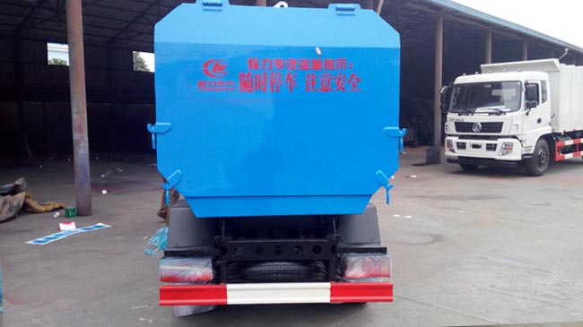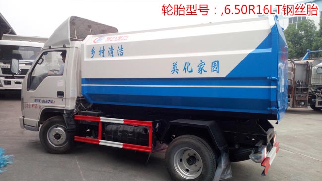 垃圾車上裝配置:全密封式垃圾箱體,采用優質武鋼產碳鋼板焊接制作,邊板折彎強化,箱體右側配液壓掛桶提升機,可掛國標120升或240升塑料垃圾桶,提升速度快,穩定性高,尾門彈簧鎖扣帶橡膠密封條,箱內設污水欄,箱體雙缸液壓自卸,多路閥手柄操控。