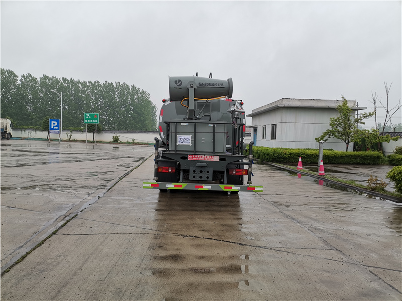 兩個后灑噴頭、兩個側噴、后工作平臺、尾部安裝綠化炮,綠化炮可以自行調節(柱狀,大雨,中雨,小雨,霧狀),