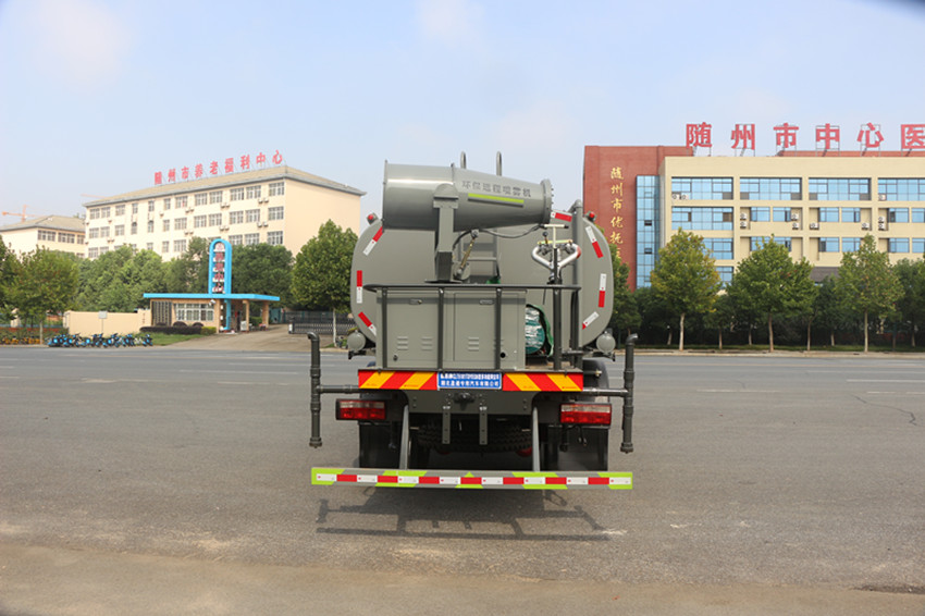 霧炮車上裝分為霧炮、機組、水罐罐體三大部分,依靠霧炮上高速運轉的風機風送原理,把罐體內的水霧化風送到50-80米遠的射程,適合風沙抑塵、工地降塵、拆遷降塵,專門用于城市開發區建設工地、拆遷工地、車站儲煤場、洗煤廠、焦化廠、鐵礦、鋼廠、港口等的揚塵風沙控制,單車蓄水量近8噸,主要作用是噴霧抑塵,同時具備灑水和道路沖洗功能,有效抑制揚塵的產生。在城市遭遇霧霾天氣、空氣質量PM2.5嚴重超標時,可隨意選定一個區域進行液霧降塵、分解淡化空氣中的顆粒濃度、將飄浮在空氣中的污染顆粒物、塵埃等迅速逼降地面,達到治理凈化空氣的良好效果