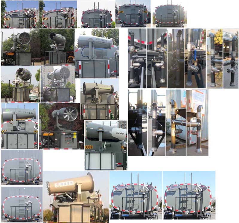 該車主要用于城鄉園林綠化噴灑作業;主要裝置為罐體及噴灑裝置.罐體總容量:11.8立方米,罐體有效容積:11.24立方米;介質:丙酮水溶液,密度950千克/立方米,罐體外形尺寸(長×長軸×短軸)(mm):5000×2360×1450.ABS系統生產廠家及型號分別為:西安正昌電子股份有限公司(型號:ZQFB-V).側、后防護材料均為:Q235碳鋼,連接方式均為:螺栓連接,后部防護截面尺寸(mm):120×50,后部防護離地高度(mm):470.僅采用底盤4500mm,4700mm軸距改裝.選裝前部不帶電子霧炮,選裝電子霧炮樣式.當前部不帶電子霧炮時,車輛長度8350mm,無前伸;當前部選裝電子霧炮時,車輛長度8850mm,前伸500mm.選裝大工作平臺,選裝后部噴灑裝置樣式.后軸僅采用鋼板彈簧懸架.選裝后部箭頭燈裝置,選裝后部弧形噴灑裝置,選裝自動球閥安裝位置,選裝油箱電瓶安裝位置.后部作業燈僅在作業時開啟,車輛行駛過程中不可開啟.隨底盤選裝駕駛室.