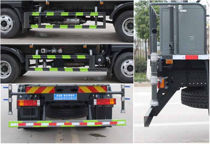該車主要用于城鄉園林綠化噴灑作業;主要裝置為罐體及噴灑裝置.罐體總容量:9.77立方米,罐體有效容積:9.3立方米;罐體外形尺寸(長×長軸×短軸)(mm):4000×2300×1540,4200×2300×1450.ABS系統生產廠家:西安正昌電子股份有限公司,型號:ZQFB-V;側、后防護材料均為:Q235碳鋼,連接方式均為:螺栓連接,后部防護截面尺寸(mm):120×50,后部防護離地高度(mm):470.僅采用底盤4100mm軸距改裝.選裝前部不帶電子霧炮,選裝電子霧炮樣式.當前部不帶電子霧炮時,車輛長度7850mm,7650mm,無前伸;當前部選裝電子霧炮時,車輛長度8350mm,8150mm,前伸500mm.選裝后部大工作平臺.隨底盤選裝駕駛室.選裝自動球閥安裝位置,選裝噴灑裝置樣式,選裝箭頭燈裝置,選裝弧形噴灑裝置,選裝后部樣式.后部作業燈僅在作業時開啟,車輛行駛過程中不可開啟.