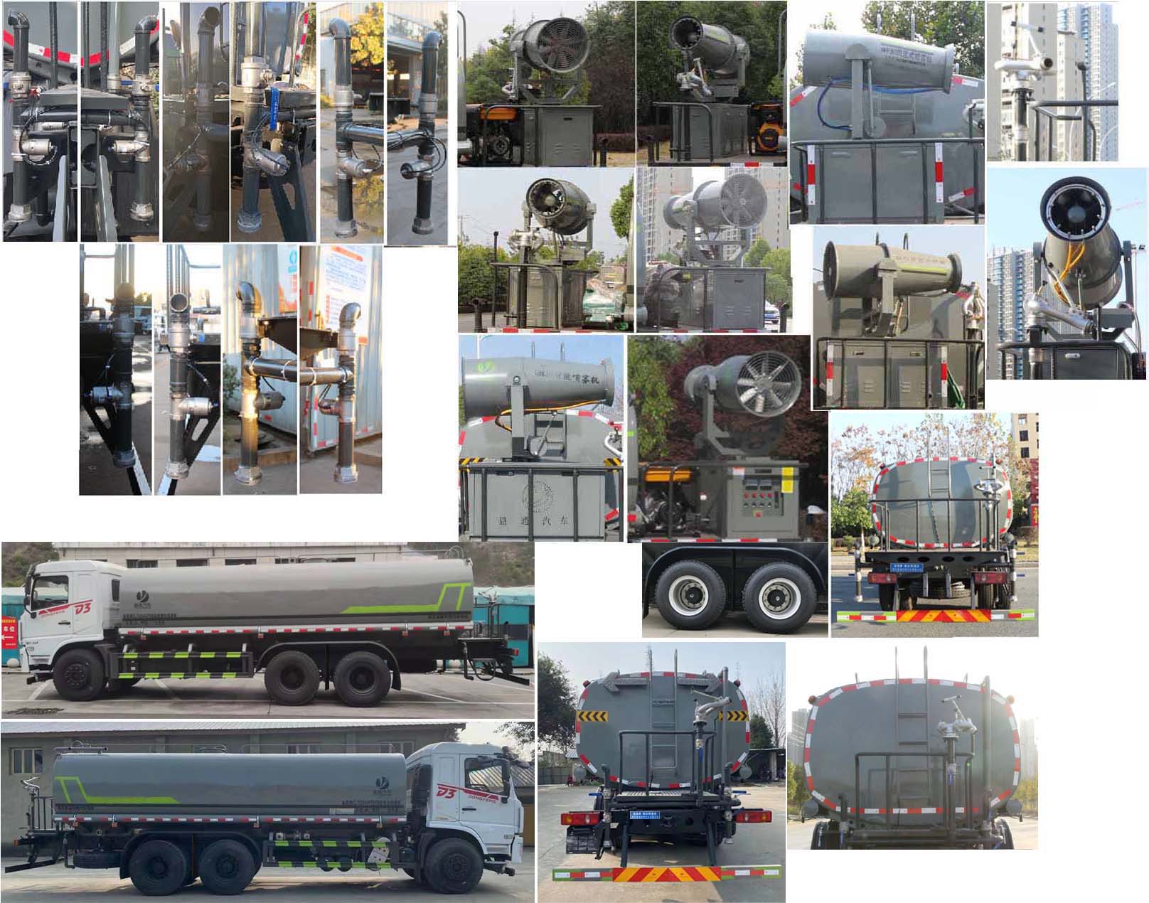 我公司產(chǎn)品標(biāo)配前噴(鴨嘴)、后沖、后灑、側(cè)噴、后置式工作 平臺(tái),平臺(tái)上配置綠化水炮(可 360°旋轉(zhuǎn),既可以調(diào)成柱狀,也可 以調(diào)成霧狀,更可以調(diào)成直沖狀、大雨、中雨、小雨、毛毛雨),配 備優(yōu)質(zhì)大功率專(zhuān)用灑水泵(可自吸自排,可從河里或池塘抽水到罐體), 取力器,雜物過(guò)濾網(wǎng),消防接口,自流球閥系統(tǒng)、取力器、球閥、濾網(wǎng) 均為國(guó)家標(biāo)準(zhǔn)產(chǎn)品,主管道加粗,法蘭墊、法蘭盤(pán)加厚,大通徑球閥。 整體具備性能優(yōu)良安全可靠、效率高、流量大、維修方便等特點(diǎn)。