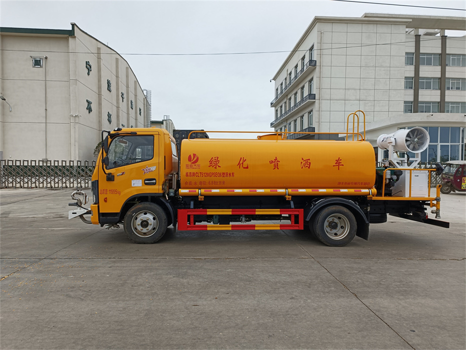 三.產品主要技術參數 序號 名稱 型號、規格 1 整車型號 CLT5120GPSEQ6 型綠化噴灑車 2 發動機型號 YCY30165-60 3 發動機馬力/功率 玉柴 165 馬力/121KW 4 發動機排量 2970ML 5 變速箱 萬里揚 6 檔 6 輪胎規格 245 真空胎 7 軸距 3800 8 總質量 11995KG 9 整備質量 4920KG 10 額定載質量 6880KG 11 整車尺寸(長×寬×高) 7.3*2.25*3 12 罐體容積 9 方 13 燃料種類 柴油 14 排放標準 國六 15 水泵型號 40/50 16 罐體材質 Q235 碳鋼