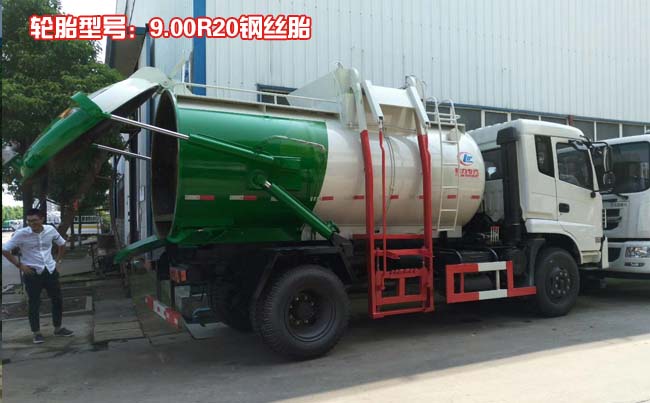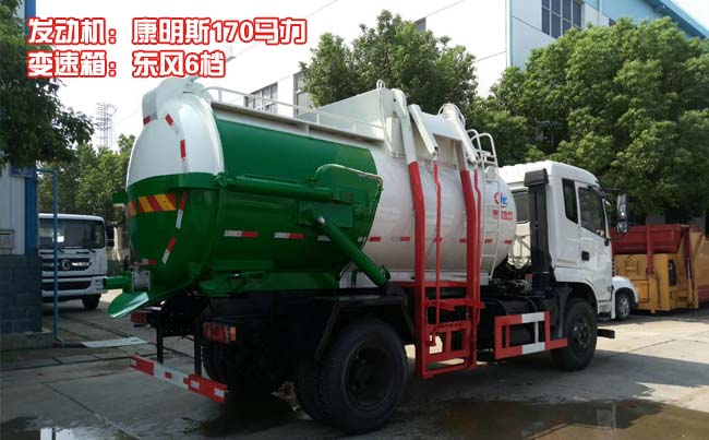 東風天錦餐廚式垃圾車,采用正宗東風天錦底盤,康明斯180馬力發動機,東風6檔變速箱,選用3800軸距,前橋4.5噸,后橋9噸,9.00R20鋼絲胎,帶空調,ABS。