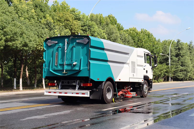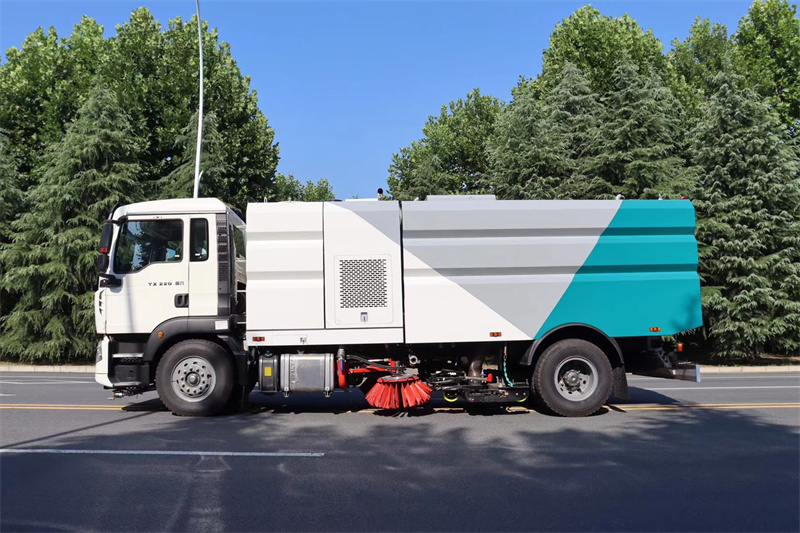 9、掃路車,清掃車,洗掃車,除塵過濾系統(tǒng)設置三級氣力輸送除塵裝置。濾筒式過濾系統(tǒng)采用脈沖式除塵。除塵系統(tǒng)中設有氣壓開關(guān)進行壓差控制實現(xiàn)脈沖自動除塵;