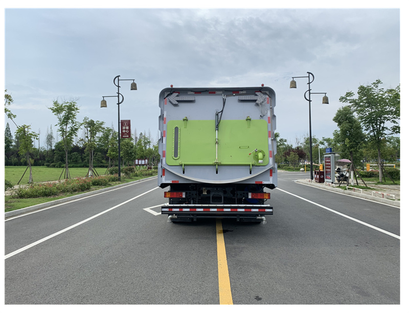 1. 采用吸掃結合的方式收集垃圾,濕式除塵、電液控制,液壓傾翻卸料的作業方式對路面進行清掃作業。