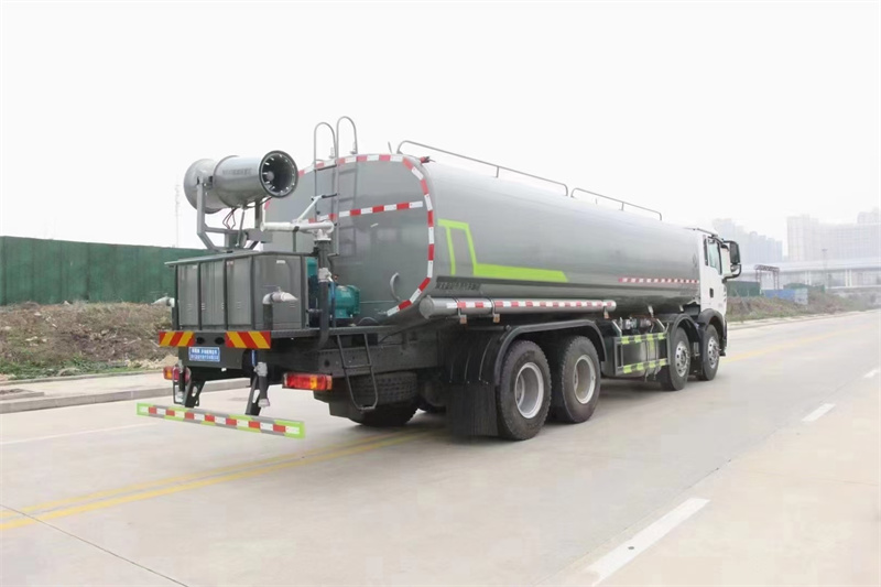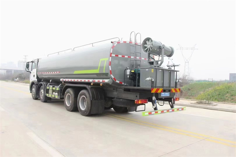縱昂牌CLT5311TDYZZ6型多功能抑塵車標配前噴(鴨嘴 ) 、后 對沖、后灑、側噴、后置式工作平臺,平臺上配置綠化水炮(可 360°旋 轉, 既可以調成柱狀,也可以調成霧狀),配備優質大功率專用灑水泵(可自吸 自 排,可從河里或池塘抽水到罐體),取力器,雜物過濾網,消防接口,自流球閥 系統、取力器、球閥、濾網均為國家標準產品,主管道加粗,法蘭墊、法蘭盤 加厚,大通徑球閥。整體具備性能優良安全可靠、效率高、流量大、維修方便 等特點。