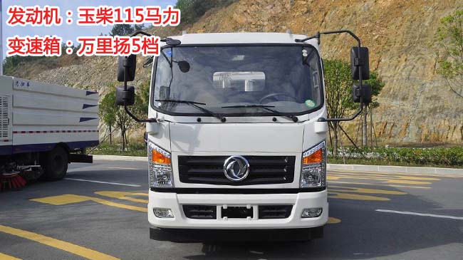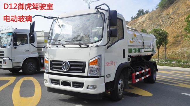東風御虎掛桶式垃圾車,D12御虎駕駛室,玉柴115馬力,萬里揚5檔變速箱,前橋1.5噸,3.5噸后橋,7.00R16輪胎,188(6)車架,新式方向盤,帶ABS,下防護,電動玻璃。