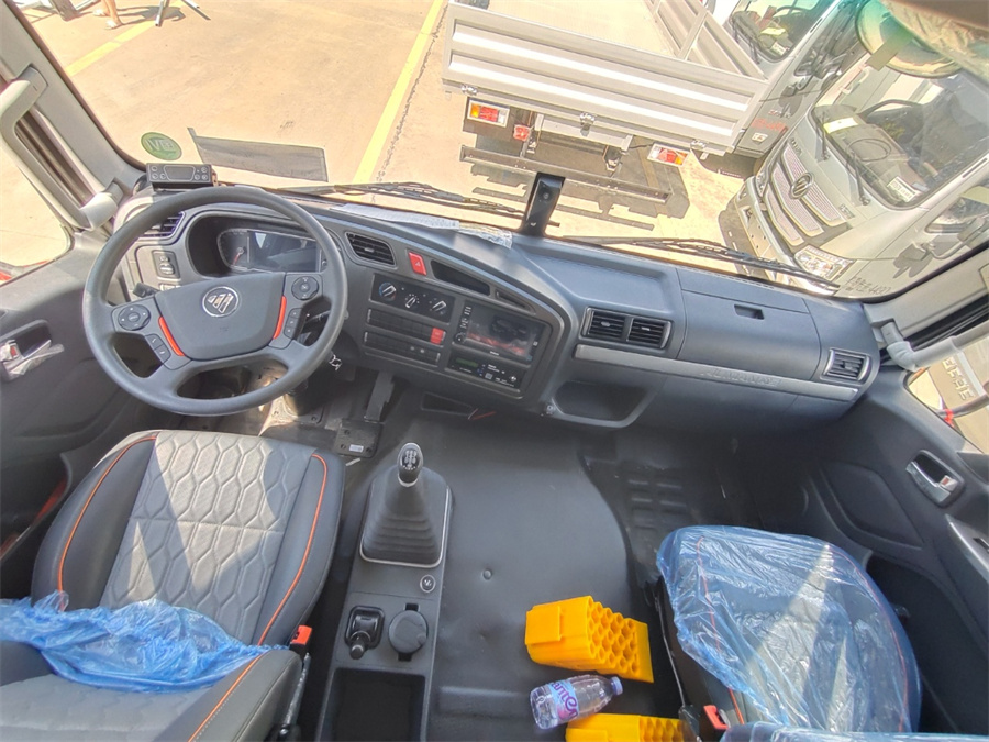 底盤配置:采用歐曼行星高頂雙臥,半高地板 (凸20cm)駕駛室,搭載玉柴300/康機290馬力發動機,軸距:2100+5200mm,9/8檔變速箱,12R22.5真空胎,600L鋁合金油箱,全浮四氣囊減震;電動液壓翻轉,氣囊皮質主座椅;電動電加熱后視鏡;遙控中鎖;MP5,倒車影像,多功能方向盤,車聯網;電動玻璃升降;倒車雷達,定速巡航。包含冷藏版電池包:帶135A.h電瓶,通風加熱座椅,后橋/速比 440/4.444 選4.111 ,前/后橋制動型式 鼓式/鼓式 ,鋼板片數 :3/3/4+3。