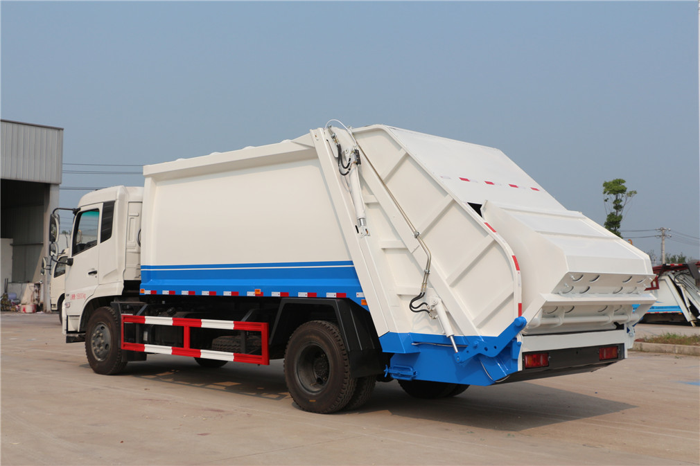 新款平面弧形廂體,廂體材料為武鋼優(yōu)質(zhì)碳鋼,外箱尺寸:8840×2550×3200mm,有效壓縮容積10-12立方,PLC一鍵操作控制,手電一體操作模式,兩側(cè)雙電控,帶駕駛室內(nèi)操作,底板支撐加強(qiáng),雙向壓縮,開放式易清潔污水箱。壓縮式垃圾車采用機(jī)電液一體化技術(shù),借助機(jī)、電、液聯(lián)合自動(dòng)控制系統(tǒng)、電腦控制、手動(dòng)操作系統(tǒng),通過填裝器和推鏟等專用裝置,實(shí)現(xiàn)垃圾倒入、壓碎或壓扁、強(qiáng)力裝填,把垃圾擠入車廂并壓實(shí)和推卸,污水全部進(jìn)入污水收集箱,解決了垃圾運(yùn)輸過程中的二次污染的問題。壓縮式垃圾車具有自動(dòng)反復(fù)壓縮以及蠕動(dòng)壓縮功能,壓縮比高、密封性好、裝載量大﹑操作方便、環(huán)保性好﹑整車?yán)霉β矢叩葍?yōu)點(diǎn)。