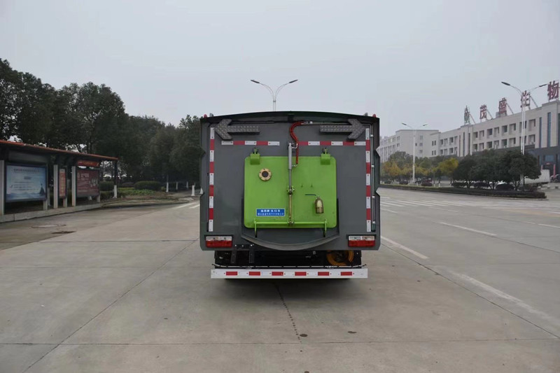 CLT5120TXSEQ6 型洗掃車功能介紹 1. 東風(fēng)多利卡洗掃車采用洗,掃,吸,混合的方式收集垃圾,濕式除塵、電液 PLC 一鍵控制,液壓傾翻卸料的作業(yè)方式對(duì)路面進(jìn)行清掃作業(yè)。 2. 采用副發(fā)動(dòng)機(jī)專門驅(qū)動(dòng)風(fēng)機(jī)和液壓系統(tǒng),保證行駛過(guò)程中能繼續(xù)工作,保證 清掃過(guò)程的連續(xù)性。 3. 采用“中置兩掃盤 +噴霧降塵+中置寬幅吸嘴(內(nèi)置高壓噴桿及兩側(cè)高壓噴 桿)”的結(jié)構(gòu)布局,對(duì)泥濘路面有更好的清潔效果,清掃過(guò)程中砂石不在飛 濺揚(yáng)塵,此布局便于清掃裝置與吸盤的調(diào)整與維護(hù),轉(zhuǎn)場(chǎng)作業(yè)時(shí)整車通過(guò)性 好。 4. 副發(fā)動(dòng)機(jī)與風(fēng)機(jī)之間的傳動(dòng)設(shè)置設(shè)有自動(dòng)離合器,可保證副發(fā)動(dòng)機(jī)空載啟動(dòng) 和停機(jī)時(shí)與風(fēng)機(jī)的自動(dòng)脫離,降低了對(duì)副發(fā)動(dòng)機(jī)的沖擊,提高了副發(fā)動(dòng)機(jī)的 工作可靠性和使用壽命。 5. 掃盤有遇障礙自動(dòng)避讓保護(hù)功能和自動(dòng)復(fù)位功能,遇到障礙自動(dòng)回縮,越過(guò) 障礙自動(dòng)回位。 6. 掃盤轉(zhuǎn)速可根據(jù)各種不同的清掃工況來(lái)調(diào)整轉(zhuǎn)速,能保證在各種污染狀況下 都有良好的清掃效果 7. 采用先進(jìn),高效的專用風(fēng)機(jī)和可隨路面自動(dòng)找平的全浮動(dòng)式吸嘴,清掃效果 好,使用壽命長(zhǎng)