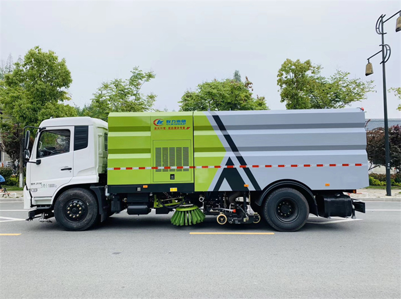 ● 國六東風(fēng)天錦洗掃車具有路面清洗、路面清掃、路緣清洗、路緣和路緣石立面洗刷、低壓沖洗、噴霧除塵等多功能。有“全洗掃”、 “左洗掃”、 “右洗掃”、 “全掃”、 “左掃”、 “右掃”6種作業(yè)模式可選擇。選擇“全洗掃”模式清洗廣場和路面,清洗效率高效果好,洗凈率達(dá)90%以上。選擇“左洗掃”或“右洗掃”模式清洗路面和路緣、洗刷路緣石立面。需要進(jìn)行路面清掃或路面保潔作業(yè)時(shí),可選擇掃路模式。需要噴霧除塵時(shí),可開啟噴霧裝置,進(jìn)行噴霧除塵作業(yè)。可以像灑水車一樣對路面進(jìn)行低壓沖洗作業(yè)。