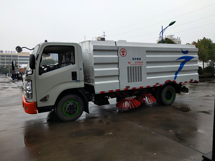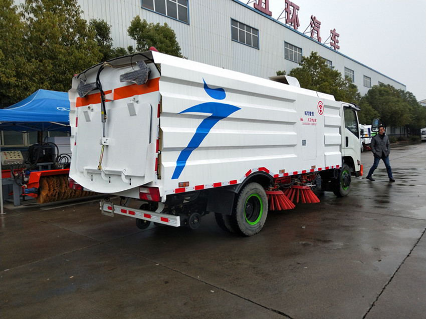 該車主要用于路面的機械化清掃作業;專用裝置為掃刷;防護材料:Q235B碳鋼,連接方式:左右側面防護裝置由專用裝置代替; 后下部防護裝置與大梁螺栓連接,后部防護斷面尺寸(mm):120×50,后部防護離地高度(mm):380; 上裝選裝新型外形樣式;ABS系統型號:VIE ABS-II,ABS系統生產廠家:浙江萬安科技股份有限公司;隨底盤選裝駕駛室. |