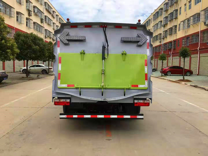 1、東風多利卡掃路車采用吸掃混合的方式收集垃圾,濕式除塵,電液傾翻卸料的作業方式對路面進行清掃作業。