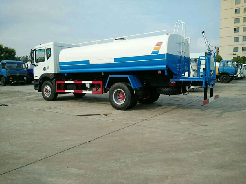 灑水車性能簡介;吸程≧7米,灑水寬度≧14-16米,射程≧25-40米,引水時間<5min,流量60m3/h。前沖(噴)、后灑、帶側噴(花灑)、帶后工作平臺、平臺上安裝綠化灑水高炮(炮噴射形狀可調節:直沖、大雨、中雨、毛毛雨、霧狀、可連續調節,360°旋轉),配消防接口,自流閥,濾網,帶自吸自排功能。配備大功率專用灑水泵,泵可自吸自排,安裝過濾網,帶消防接口,可通過消防栓進水,帶自流閥,隨車選裝20米綠化卷盤,可噴灑農藥,罐體金屬漆。罐體有橢圓和方圓罐兩種,可根據用戶的要求定做。