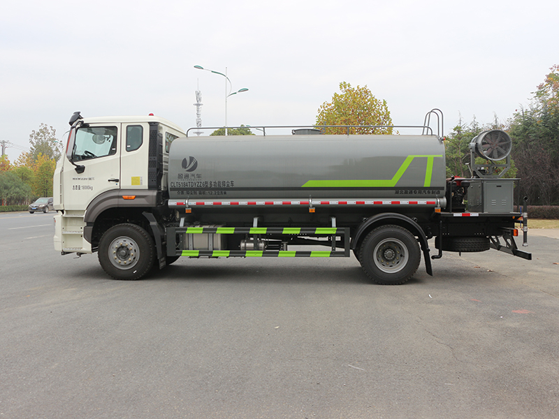 標準配置灑水車主要裝備有:前沖(沖洗公路路面)、后灑(公路路面養護)、側噴、高位側花灑(路邊綠化帶優化);后工作平臺高壓水炮,可調節成柱狀,射程≥28m;也可調節成霧狀,射程≥30米,水泵自吸高度:≤7m,灑水寬度:≥15m。側防護網,自流閥,消防接頭。灑水車水泵為常壓水泵,功能可以抽水、排水。另外根據用戶要求,可加消防泵、噴霧機、農藥卷盤、農藥柱塞泵。罐內可以做防腐防銹、電磁閥氣動閥自動放水等****,以滿足不同用戶需求。