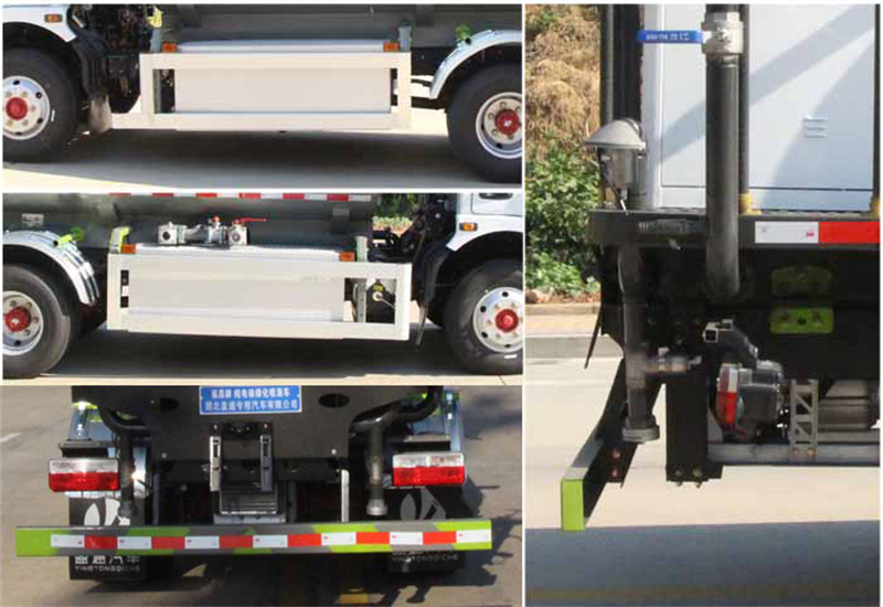 福田福瑞卡純電動5噸灑水車該車主要用于城鄉園林綠化,路面噴灑;主要裝置為罐體及噴灑裝置;罐體總容量:4.03立方米;罐體有效容積3.8立方米;介質:丙酮水溶液,密度950千克/立方米,罐體外形尺寸(長×長軸×短軸)(mm):2900×1650×1200;側防護材料為:鋁合金+Q235碳鋼,連接方式為螺栓連接;后防護材料為:Q235碳鋼,連接方式為:螺栓連接;后防護截面尺寸:120×50mm,后部防護離地高度(mm):480;儲能裝置類型/總成生產廠家/單體生產廠家:磷酸鐵鋰電池/寧德時代新能源科技股份有限公司/寧德時代新能源科技股份有限公司;電機型號:TZ310XS-LKM0503,電機額定功率:60kW;電機峰值功率:110kW;電機型號:TZ262XSSFX02,電機額定功率:60kW;電機峰值功率:120kW;ABS型號:ABS/ASR-12V-4S/4M,生產企業:襄陽東風隆誠機械有限公司;選裝ABS型號:ABS/ASR-24V-4S/4M,生產企業:襄陽東風隆誠機械有限公司;選裝前部不帶電子水炮,該狀態下車長為6430mm;當前部安裝電子水炮時,車長為6930mm,車輛前伸500mm;選裝電子水炮樣式;僅采用底盤3300mm軸距改裝;隨底盤選裝前圍造型及燈具。