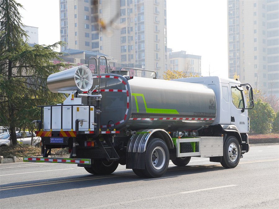 東風柳氣12方電動灑水車該車主要用于城鄉園林綠化,路面噴灑;主要裝置為罐體及噴灑裝置;罐體總容量:11.7立方米;罐體有效容積11.4立方米;介質:丙酮水溶液,密度950千克/立方米,罐體外形尺寸(長×長軸×短軸)(mm):4000×2300×1540,4200×2300×1450;側防護材料為鋁合金+Q235碳鋼,連接方式為螺栓連接;后防護材料為:Q235碳鋼,連接方式為:螺栓連接;后部防護截面尺寸(mm):120×50,后部防護離地高度(mm):490;ABS型號/企業:ABS-E 4S/4M/采埃孚商用車系統(青島)有限公司,CM4XL-4S/4M/廣州瑞立科密汽車電子股份有限公司;隨底盤安裝限速裝置,限速89km/h;儲能裝置單體種類/儲能裝置單體生產企業/儲能裝置總成生產企業:磷酸鐵鋰蓄電池/湖北億緯動力有限公司/湖北億緯動力有限公司;電機種類/電機型號/電機生產企業/電機控制器型號/電機控制器生產企業/電機額定功率/電機峰值功率:永磁同步/TZ368XS064/湖南中車商用車動力科技有限公司/KTZ54X42SP35/湖南中車商用車動力科技有限公司/80kw/160kw.選裝前部電子水炮樣式,選裝前部不帶電子水炮,該狀態下車長為7790mm,7615mm;當前部安裝電子水炮時,車長為8290mm,8115mm,車輛前伸500mm;選裝后部不帶霧炮樣式.選裝噴灑裝置樣式,選裝箭頭燈裝置,選裝大小工作平臺.
