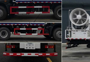 ABS型號:3631010-C2000,J ABS;ABS生產企業:東科克諾爾商用車制動系統(十堰)有限公司,焦作博瑞克控制技術有限公司;選裝描述:隨底盤選裝駕駛室;側后防護情況:左右側面及后防護勻采用焊接連接, 防護材料Q235B:后部防護裝置斷面尺寸(寬×高)50×120(mm),后部防護離地高度:490mm;專用功能及裝置:專用裝置為抑塵霧炮,用于城市或建筑工地的降塵作用;其他說明:罐體有效容積:10.8立方米,罐體外形尺寸(長×長軸×短軸)關系為(mm): 4400×2480×1710,整車長/軸距/前懸/后懸(mm)對應關系為:10350/4350+1350/1250(1450)/3400(3200) ;10350/4750+1350/1250(1450)/3000(2800);