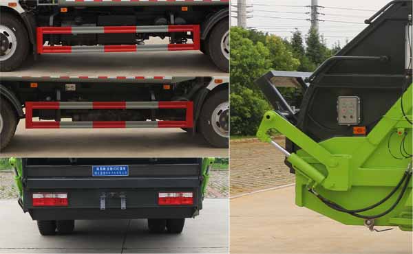 縱昂牌CLT5120ZYSEQ6型壓縮式垃圾車該車專用裝置為垃圾箱體及液壓系統裝置,主要用于垃圾的收集,轉運作業;隨底盤選裝駕駛室,選裝無上料裝置時無后伸,選裝密封斗裝置,擺臂裝時,后伸280mm,選裝翻轉機構,翻掛桶,三角斗時,后伸380mm;側防護材料均為:Q235碳鋼,連接方式均為:螺栓連接,后部防護為專用裝置代替,后部防護離地高度(mm):450;ABS型號/廠家:ABS型號:ABS/ASR-24V-4S/4M,廠家:襄陽東風隆誠機械有限責任公司;發動機型號/油耗值(L/100km)對應關系:D4.0NS6B170/20.5,D4.0NS6B185/20.4,YCS04190-68/20.3,ZD30D16-6N/20.3,D25TCIF1/20.3,D40TCIF1/20.3,D45TCIF1/20.2,NV30-C6G/20.6,NV30-C6C/20.3,NV30-C6D/20.3,CY4SK161/20.4,CY4SK261/20.1,CY4SK361/20.4,YCY30165-60/21.3,D4.0NS6B160/20.7,CY4BK261/21.1,YCY24140-60/21.1,Q28-130E60/20.9,H30-165E60/21.0,D4.0NS6B195/20.4.該車型可選裝直接供電ETC車載裝置.采用3800mm軸距.發動機最大凈功率值如下:CY4SK161:132kW,CY4SK261:122kW,CY4SK361:122kW,NV30-C6G:112kW,NV30-C6C:117kW,NV30-C6D:117kW,D4.0NS6B170:120kW,D4.0NS6B185:131kW,YCS04190-68:136kW,ZD30D16-6N:115kW,D30TCIF1:120kW,D40TCIF1:130kW,D25TCIF1:105kW,D45TCIF1:157kW,YCY30165-60:117kW,D4.0NS6B160:113kW,CY4BK261:97kW,YCY24140-60:99kW,Q28-130E60:93kW,H30-165E60:117kW,D4.0NS6B195:138kW,CA4DD2-18E6-30:129kW.選裝左右及后部樣式。隨底盤選裝燃油箱,電瓶,尿素罐,儲氣筒左右安裝位置。