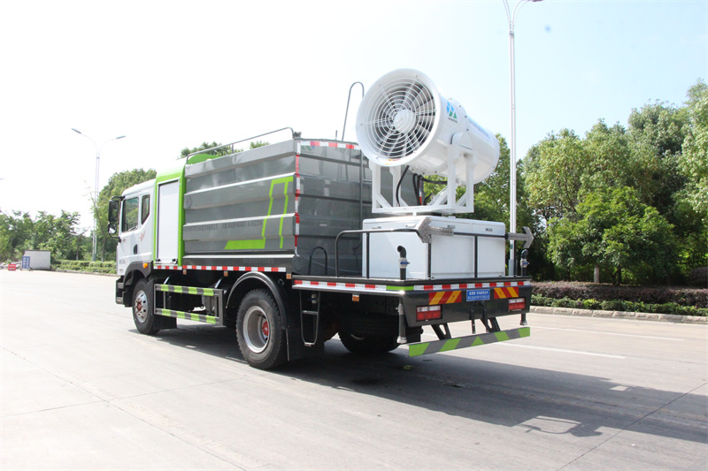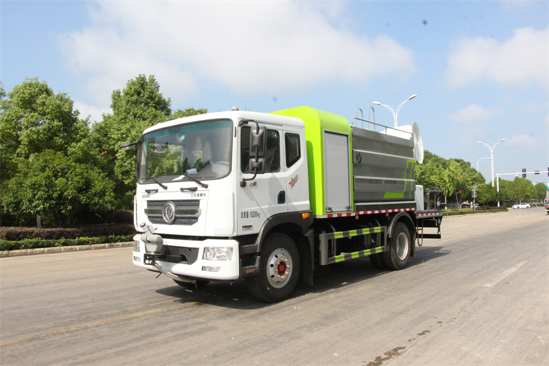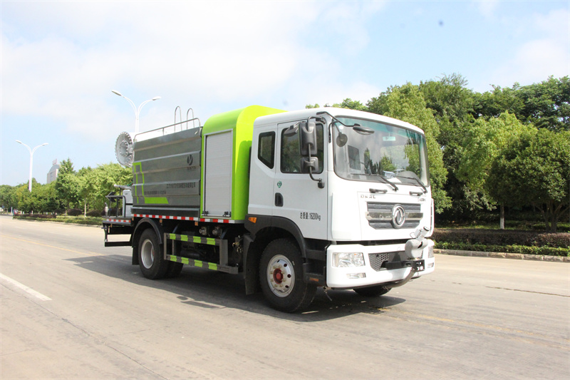 東風(fēng)12方大型霧炮灑水車(chē)產(chǎn)品簡(jiǎn)述:縱昂牌 CLT5181TDYEQ6A 型多功能抑塵車(chē)標(biāo)配前噴(鴨嘴)、后 對(duì)沖、后灑、側(cè)噴、后置式工作平臺(tái),平臺(tái)上配置綠化水炮(可 360°旋轉(zhuǎn),既 可以調(diào)成柱狀,也可以調(diào)成霧狀),配備優(yōu)質(zhì)大功率專(zhuān)用灑水泵(可自吸自排, 可從河里或池塘抽水到罐體),取力器,雜物過(guò)濾網(wǎng),消防接口,自流球閥系統(tǒng)、 取力器、球閥、濾網(wǎng)均為國(guó)家標(biāo)準(zhǔn)產(chǎn)品,主管道加粗,法蘭墊、法蘭盤(pán)加厚, 大通徑球閥。整體具備性能優(yōu)良安全可靠、效率高、流量大、維修方便等特點(diǎn)
