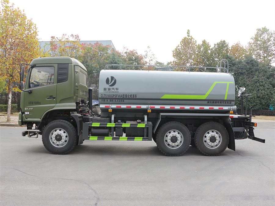 灑水車(chē)產(chǎn)品標(biāo)配前噴(鴨嘴)、后沖、后灑、側(cè)噴、后置式工作 平臺(tái),平臺(tái)上配置綠化水炮(可 360°旋轉(zhuǎn),既可以調(diào)成柱狀,也可 以調(diào)成霧狀,更可以調(diào)成直沖狀、大雨、中雨、小雨、毛毛雨),配 備優(yōu)質(zhì)大功率專(zhuān)用灑水泵(可自吸自排,可從河里或池塘抽水到罐體), 取力器,雜物過(guò)濾網(wǎng),消防接口,自流球閥系統(tǒng)、取力器、球閥、濾網(wǎng) 均為國(guó)家標(biāo)準(zhǔn)產(chǎn)品,主管道加粗,法蘭墊、法蘭盤(pán)加厚,大通徑球閥。 整體具備性能優(yōu)良安全可靠、效率高、流量大、維修方便等特點(diǎn)